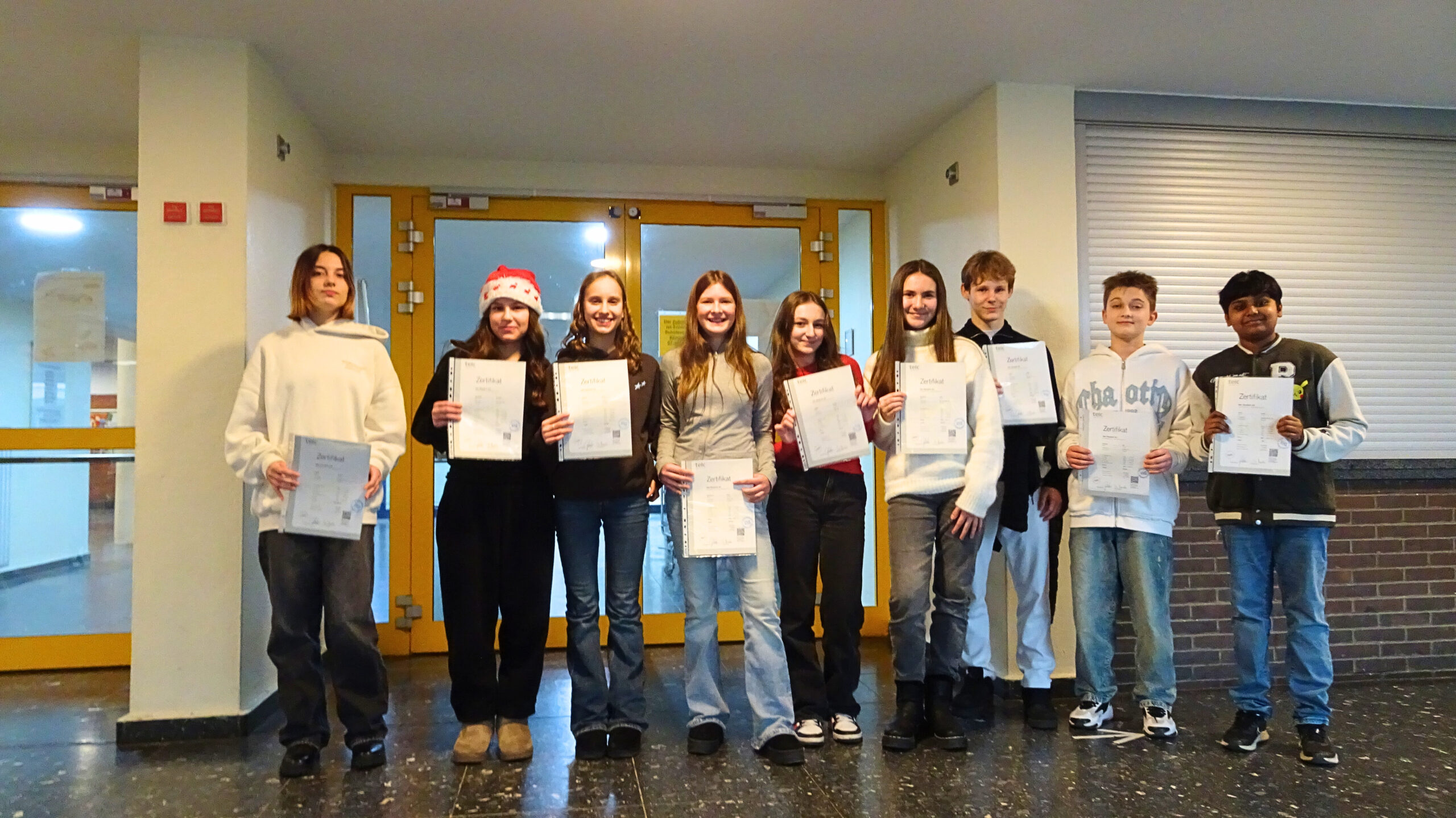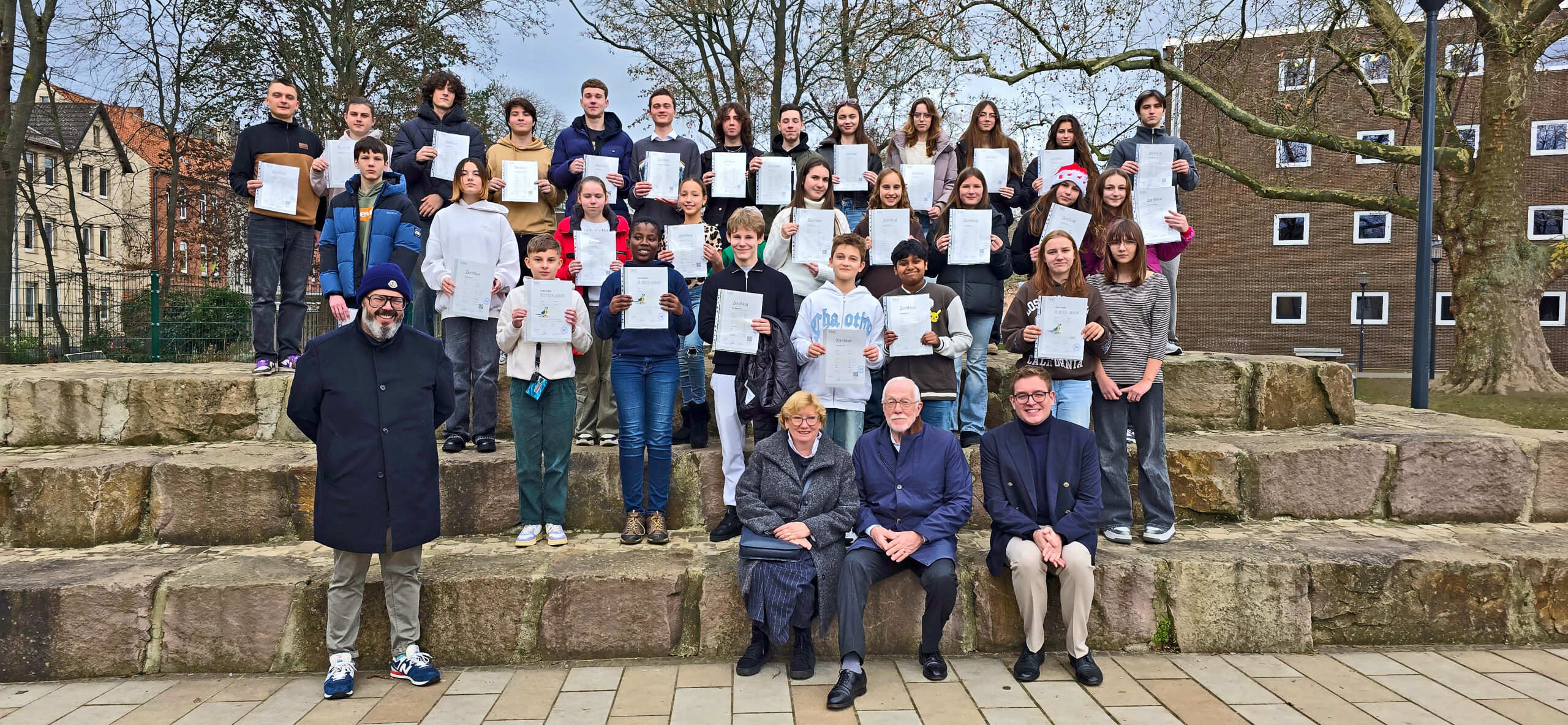 Dieser Erfolg wäre ohne die Unterstützung vieler engagierter Personen und Institutionen nicht möglich gewesen. Ein besonderer Dank geht an Familie Runza (DCR Agentur für Verkaufsförderung & Marketing), die mit ihrem finanziellen Engagement die Sprachkurse für die Schüler:innen ermöglicht hat. Ein weiterer Dank gilt der Bürgerstiftung Hildesheim und der Johannishofstiftung, die in diesem Jahr die Finanzierung der Zertifikatsprüfungen an der Volkshochschule Hildesheim übernommen haben. Ebenso möchten wir dem Ehepaar Bürrig danken, das sich bereit erklärt hat, die Finanzierung der Zertifikatsprüfungen langfristig zu sichern. Auch der Stadt Hildesheim für die Bereitstellung der Lernmaterialien und der Volkshochschule Hildesheim für die Organisation der Gruppenanmeldungen gebührt ein herzlicher Dank.