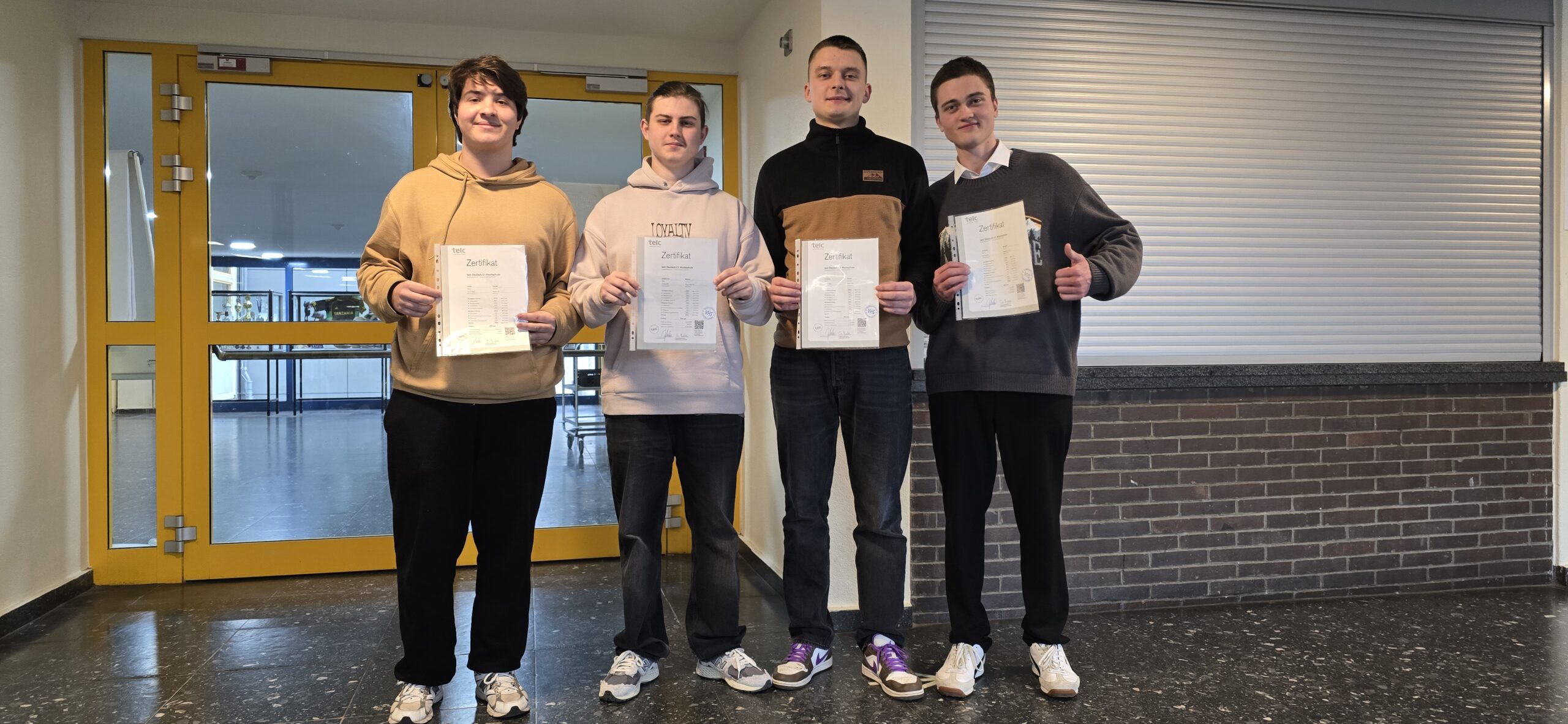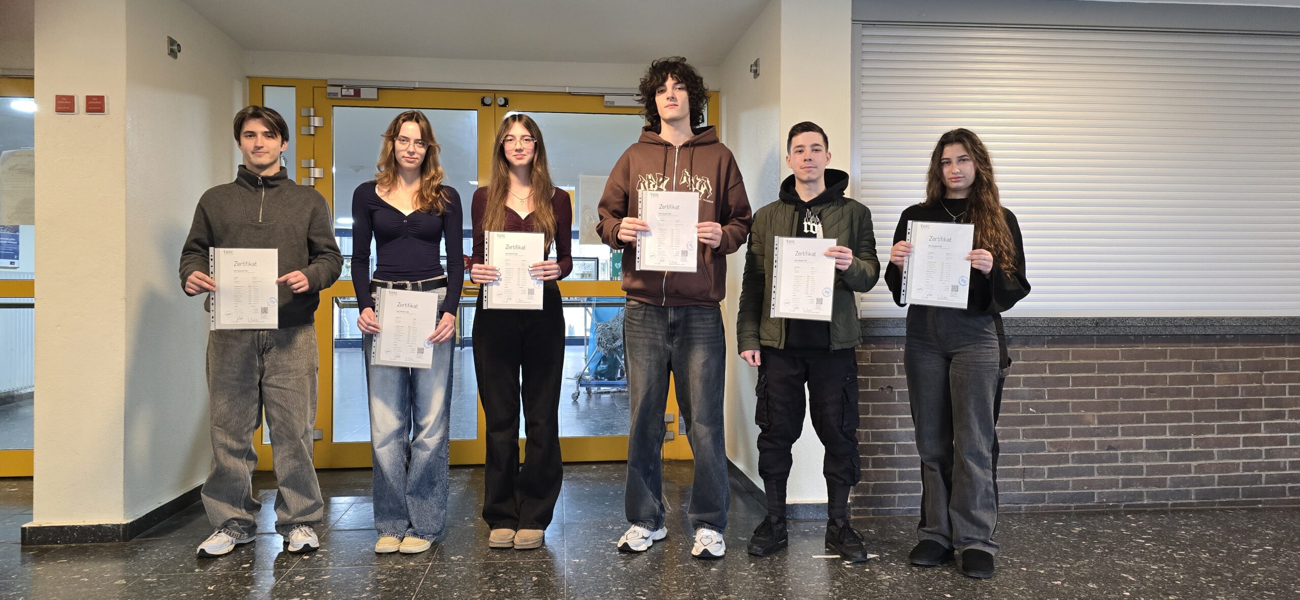 C1: Arvlo Shapochka, Artem Frolov, Tymoffi Punyk, Marksym Bondarenko, Zhasmin El-Lazkoni, Dmytro Parkomenko, Kyrylo Ivanenko Am Tag der Zertifikatsprüfungen stellten alle Teilnehmer:innen ihr Können bei der Volkshochschule unter Beweis. Einige der Absolvent:innen haben es bereits geschafft, mit ihren GER B2/C1-Zertifikaten den Übergang in Berufsschulen, Ausbildungen oder Studienkollegs erfolgreich zu meistern. Das zeigt, wie wertvoll diese Chancen für die Zukunft nicht nur für die schulische, sondern auch für die berufliche Zukunft der jungen Menschen ist.